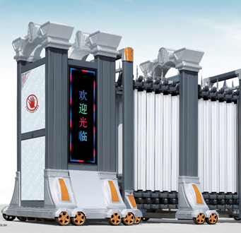4.電動(dòng)伸縮門(mén)體有LED彩燈,靜態(tài)顯示屏字樣,全遙控。