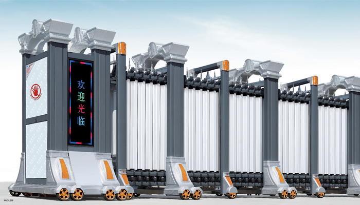 5.電動(dòng)伸縮門(mén)體采用優(yōu)質(zhì)不銹鋼或鋁合金等材料制作,采用平行四邊形原理交接,伸縮靈活。驅(qū)動(dòng)器采用特種電機(jī)驅(qū)動(dòng),蝸桿蝸輪減速,設(shè)有手動(dòng)離合器,停電時(shí)可手動(dòng)啟閉。